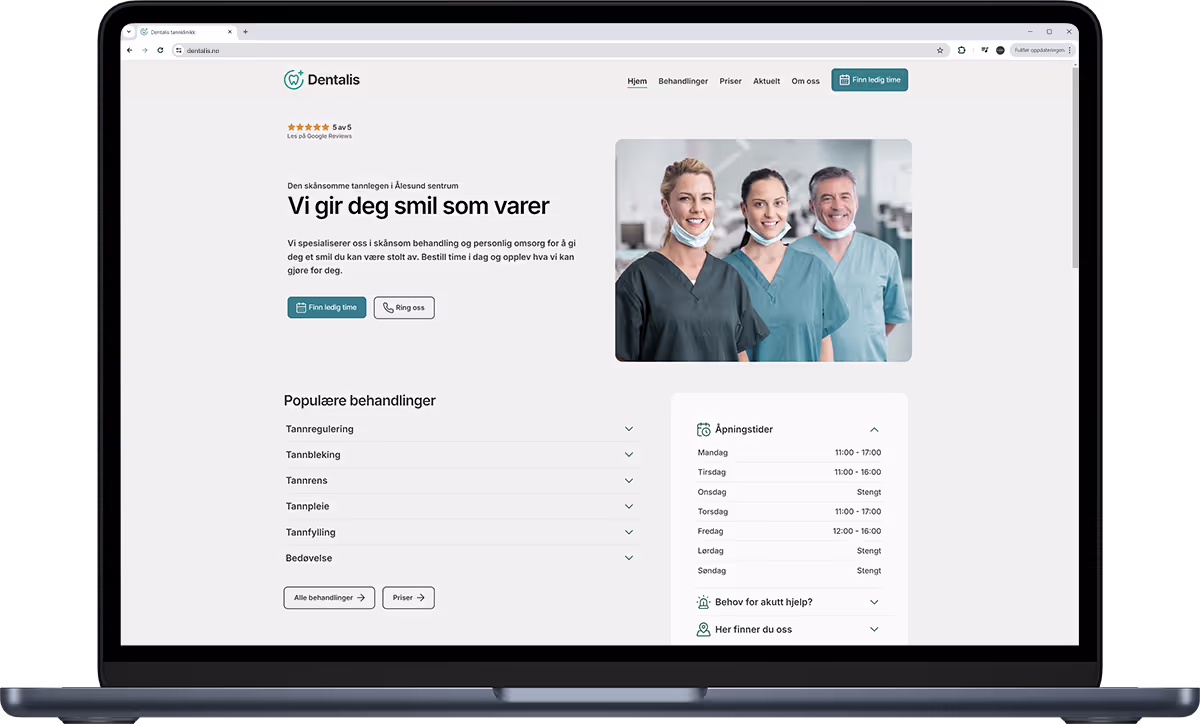 Gode bilder er viktig for å brukerne skal få et godt inntrykk av klinikken din. Når potensielle pasienter eller kunder besøker nettsiden, vil de ofte se etter signaler på at klinikken er et trygt og pålitelig sted. Bilder som viser rene, moderne lokaler og imøtekommende ansatte, kan bidra til å bygge tillit allerede før pasienten tar kontakt og det gjør det mer sannsynlig at de velger nettopp din klinikk.